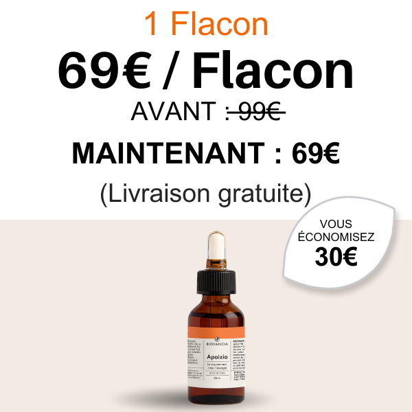 Apaizia est une huile de soin qui associe 7 actifs naturels pour apaiser les gênes articulaires et musculaires : arnica, gaulthérie, harpagophytum, capsaïcine et huiles de Mentha arvensis, de calendula et de lavande.