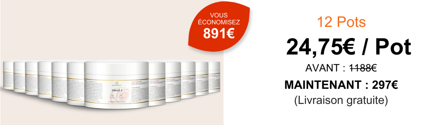 Fatigué, en manque d’énergie, un corps et un cerveau qui fonctionnent au ralenti… Avec Ideal J, offrez à vos cellules la puissance régénératrice des super-polyphénols hautement concentrés, validés scientifiquement pour ralentir le vieillissement cellulaire et restaurer votre vitalité.
