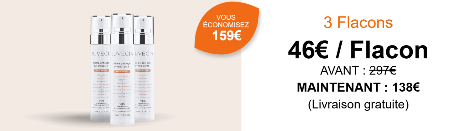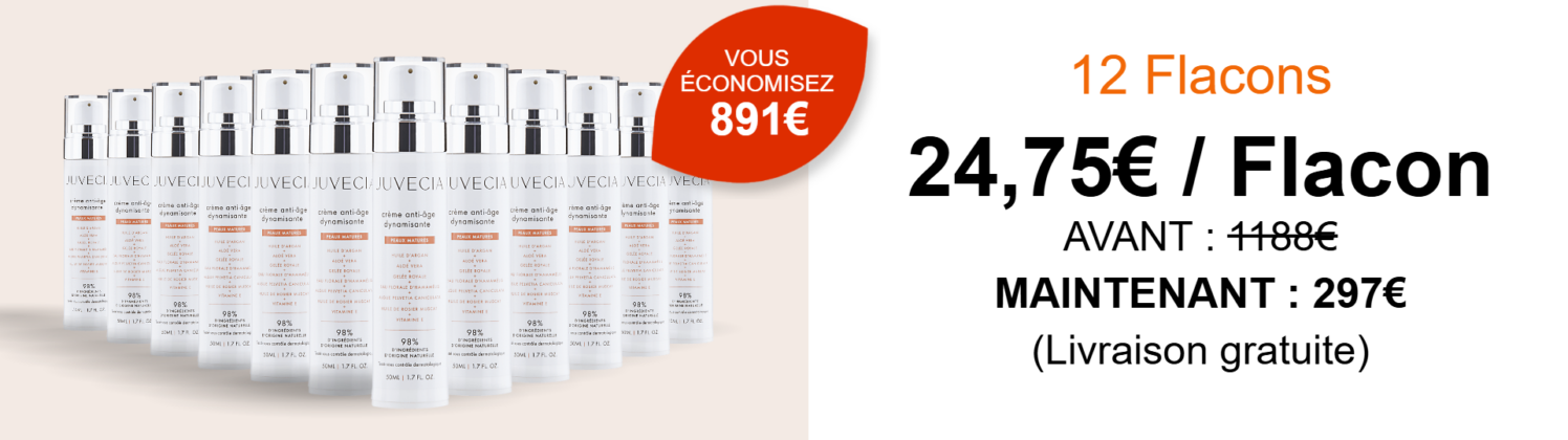 50 ml / 1 flacon = 1 mois. Appliquez Juvecia matin et/ou soir sur le visage, le cou et le décolleté. Massez délicatement pour une pénétration optimale.