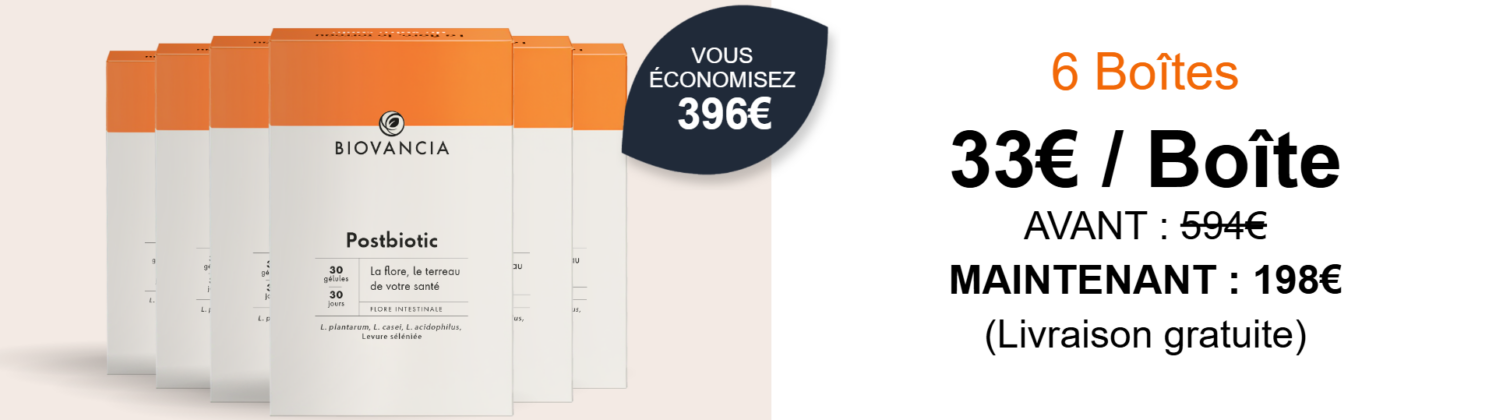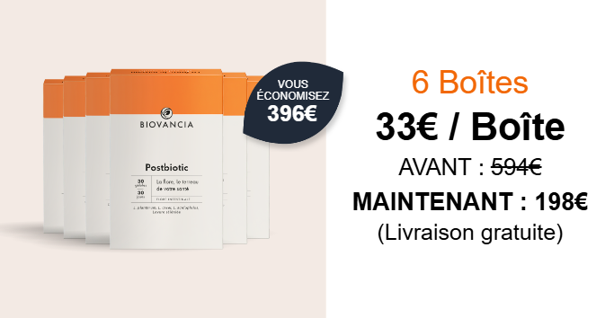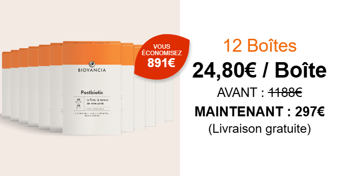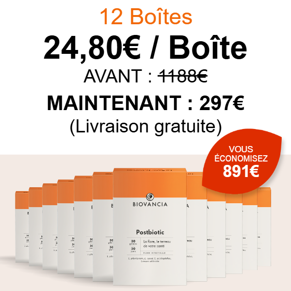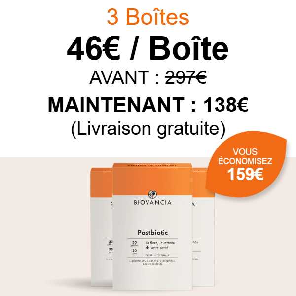 POSTBIOTIC est la première formule de Biovancia qui agit à la racine du problème, en rééquilibrant votre flore intestinale grâce à une combinaison unique de 3 postbiotiques.