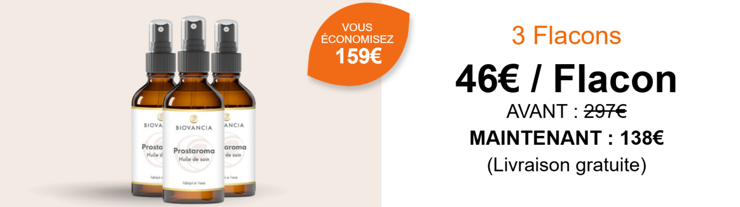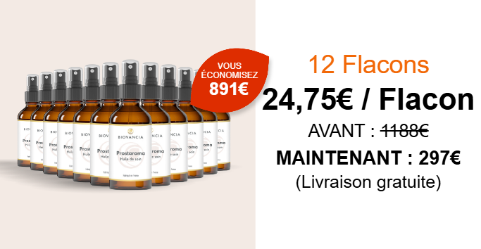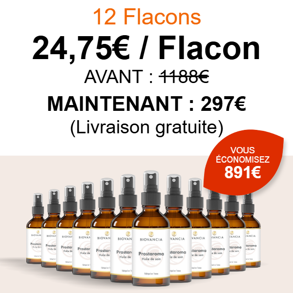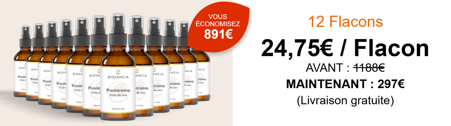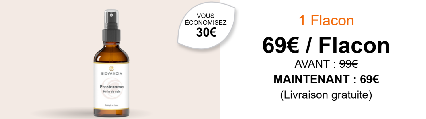 Vous vous levez plusieurs fois par nuit pour uriner ? Vous avez un jet faible, des envies pressantes, une pesanteur dans le bas-ventre ? Découvrez Prostaroma : la seule formule à appliquer localement pour un effet apaisant immédiat sur la prostate.