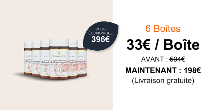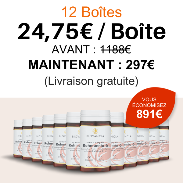 Rehmannia 6 est un complexe inédit qui s’inspire d’une formule ancestrale chinoise : Liu Wei Di Huang Wan.